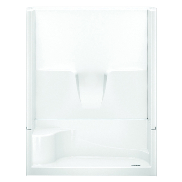 160344PS Acrylx Corner Seat Right Drain 4-Piece Smooth Wall Alcove Shower Stall, 35-1/4 in L x 60 in W x 77-1/4 in H, White