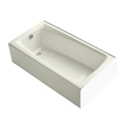 Mendota Cast Iron Left Drain Alcove Bathtub, 45 gal, 60 in L x 32 in W x 16-1/4 in H, Biscuit