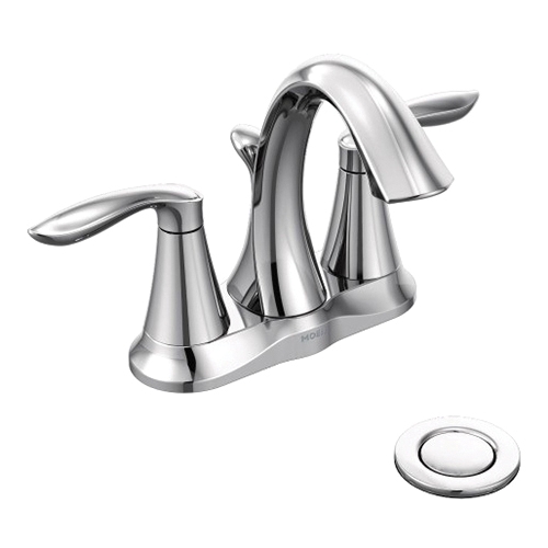 Eva 6410 Chrome Metal 2-Handle High Arc Centerset Lavatory Sink Faucet, 1.5 gpm at 60 psi, 1/2 in IPS, 4 in Centers