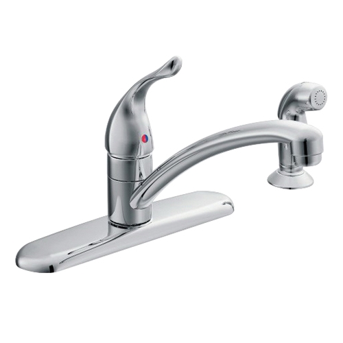 The Chateau collection delivers Moen performance and reliability with a simple, understated appeal. A chrome finish creates a bright, highly reflective look, while the low-arc spout is designed for the more conventional kitchen.
