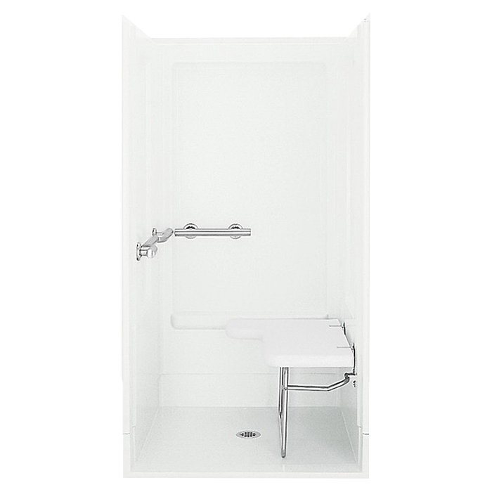 OC-SS-39 Vikrell Right Seat Center Drain Swirl-Gloss Alcove Shower Stall with Grab Bar, 39-3/8 in L x 39-3/8 in W x 73-1/4 in H, White