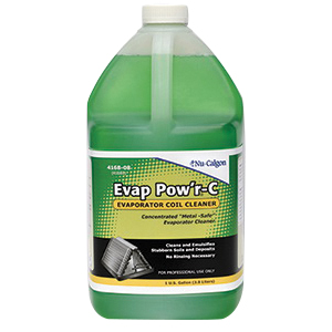 Evap Pow'r is a "no-rinse" product formulated for cleaning indoor evaporator coils. The green-colored, slightly alkaline liquid is metal-safe and therefore will not harm the coil's metal surfaces when left in contact with them even in a no-rinse application. It cleans and emulsifies the most stubborn soils and deposits and is biodegradable as well as USDA authorized.