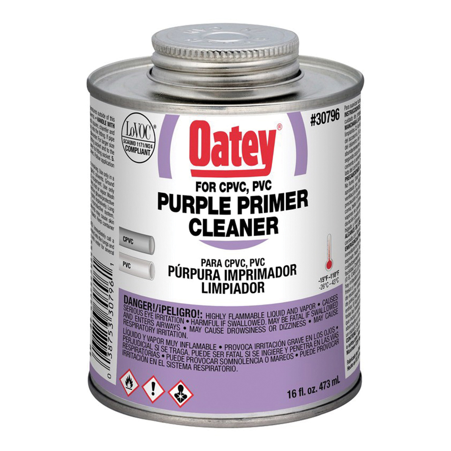 - Purple tinted primer for use on PVC and CPVC pipe and fittings