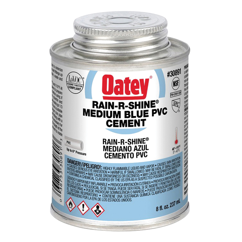 Rain-R-Shine Medium Body PVC Solvent Cement, 8 oz Can, Blue