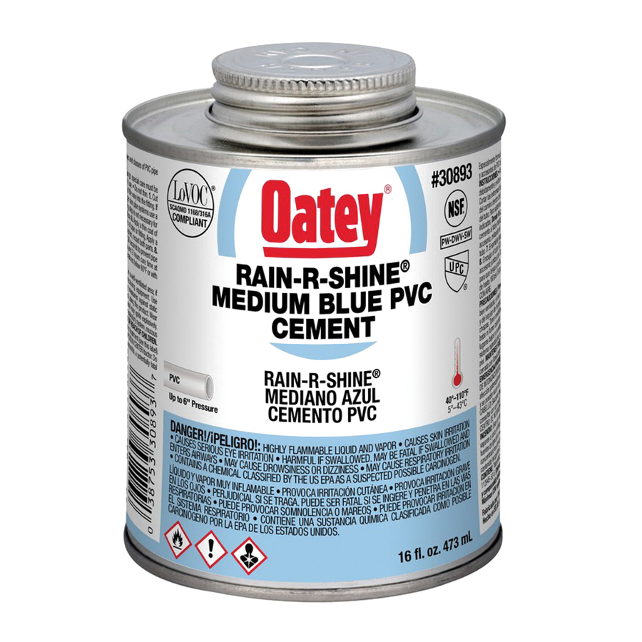 Rain-R-Shine Medium Body PVC Solvent Cement, 16 oz Can, Blue
