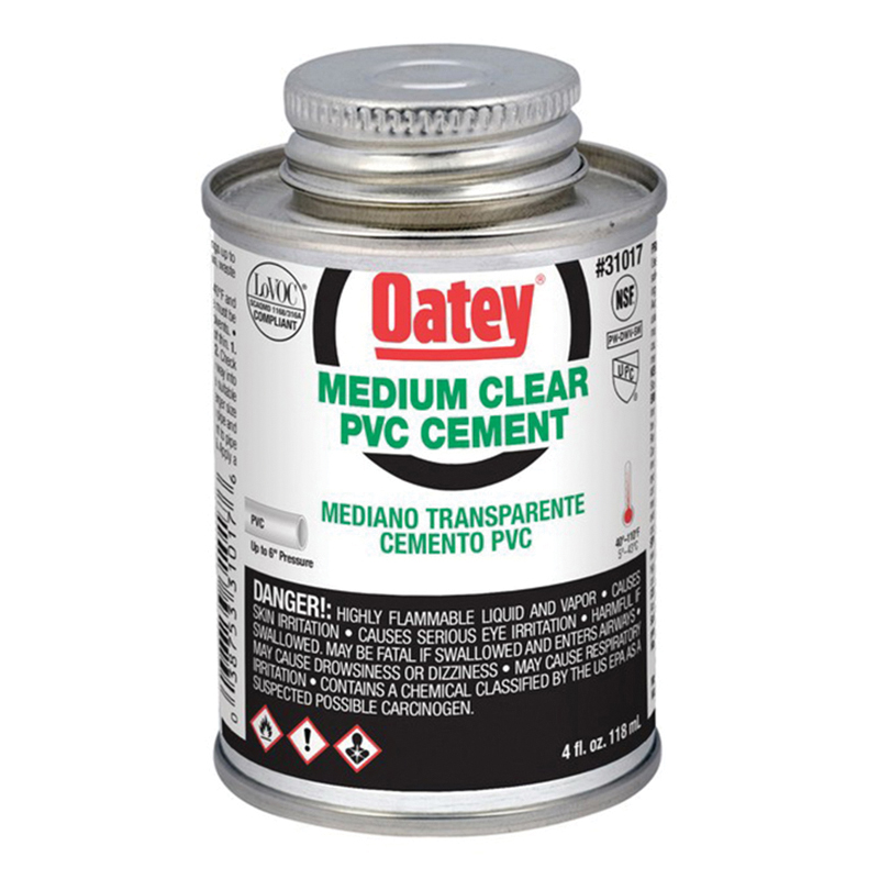 Medium PVC Solvent Cement, 4 oz Can, Clear