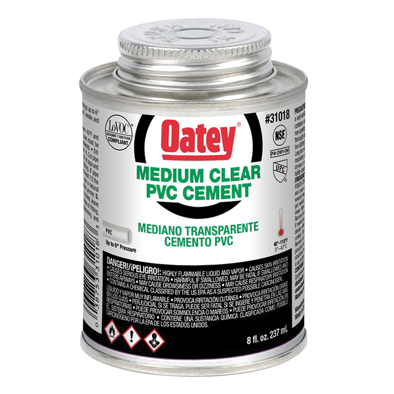 Medium PVC Solvent Cement, 8 oz Can, Clear