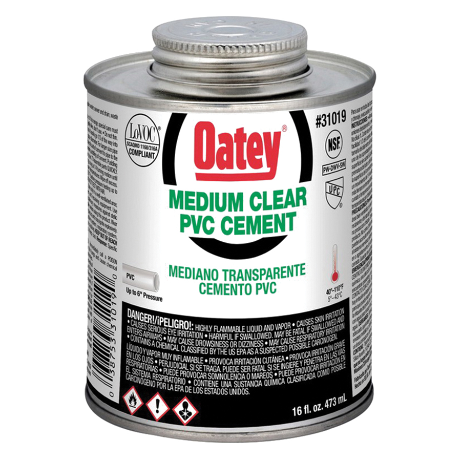 Medium PVC Solvent Cement, 16 oz Can, Clear