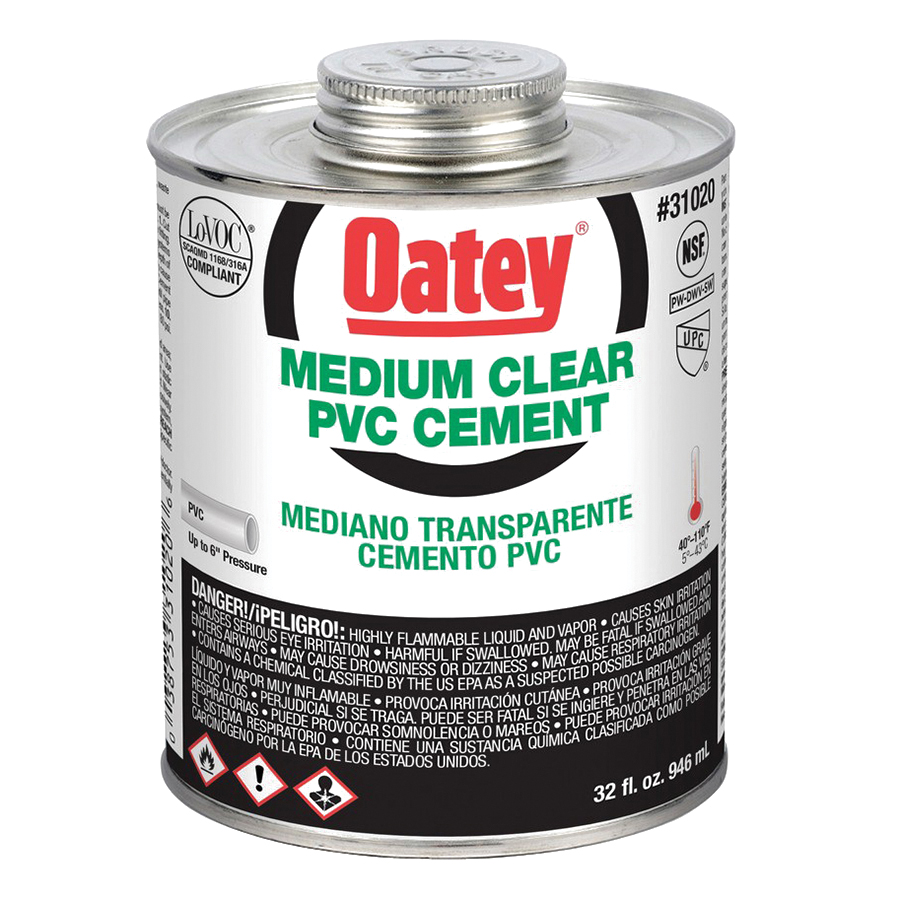 Medium PVC Solvent Cement, 32 oz Can, Clear