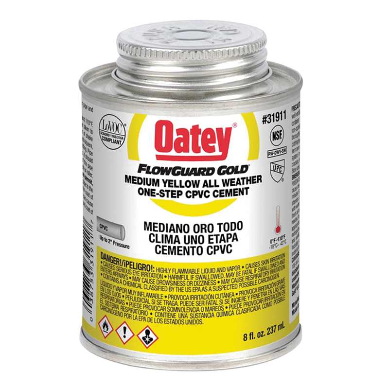 FlowGuard Gold Medium Body 1-Step All Weather CPVC Solvent Cement, 8 oz Can, Yellow