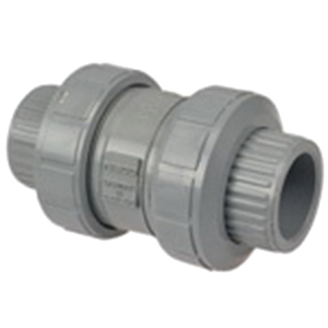 The Chemtrol true union ball check valve stops the flow of media in one direction while allowing flow in the opposite direction, with minimum turbulence and chatter while maintaining pump prime. The valve's injection molded CPVC construction with FKM O-ring is ideal for use in systems for hot corrosive liquids, hot and cold water distribution, chemical processing, industrial plating, deionized water lines, chemical drainage, waste water treatment systems and similar applications above the temperature range of PVC. The original Chemtrol true union design allows the valve and operational components to be conveniently lifted from the piping system for repair or replacement. The valve can be easily joined with the socket end connections. Corzan CPVC schedule 80 thermoplastics demonstrate excellent mechanical strength over broad temperature range, outstanding underground performance and superior hydraulics. Chemtrol Corzan CPVC valves are lightweight, easy to install, maintenance-free and will not rust, scale, pit or corrode. Chemtrol ball check valves are backed by a 1-year limited warranty. Because Chemtrol is a Nibco brand the flow-control valves are unsurpassed in quality, performance and longevity.