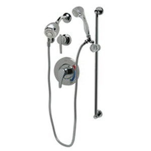 - 2.5 gpm adjustable spray hand/wall showerhead in chrome finish, 60 in flexible metal hose, 24 in mounting slide bar wall connection