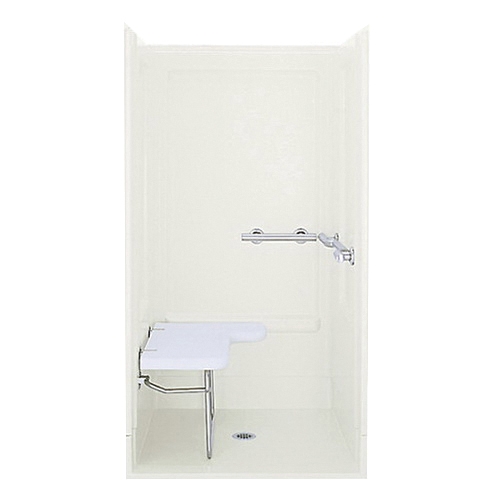 Add security to your bathroom with the transfer shower. This back wall features a grab bar at left. Made of solid Vikrell material, it delivers strength, durability and lasting beauty. The lightly textured swirl-gloss finish hides scratches from everyday use.