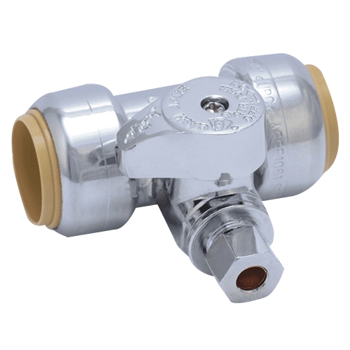 Chrome-Plated DZR Brass 1/4-Turn Stop Tee , 3/4 x 3/4 x 1/4 in, Push-to-Connect x Push-to-Connect x Compression, Lead-Free