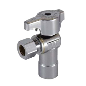 T-595NL Chrome-Plated Brass 1/4 Turn Angle Stop Valve, 1/2 x 3/8 in, Sweat x Compression, Lead-Free