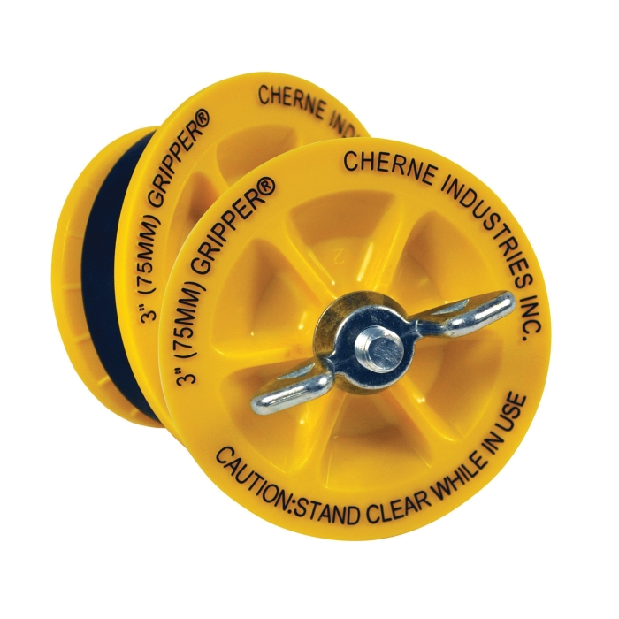 Cherne end-of-pipe gripper plugs can be used in applications including DWV (drain, waste and vent) testing and stack testing. End-of-pipe design seals only at the end of a pipe.