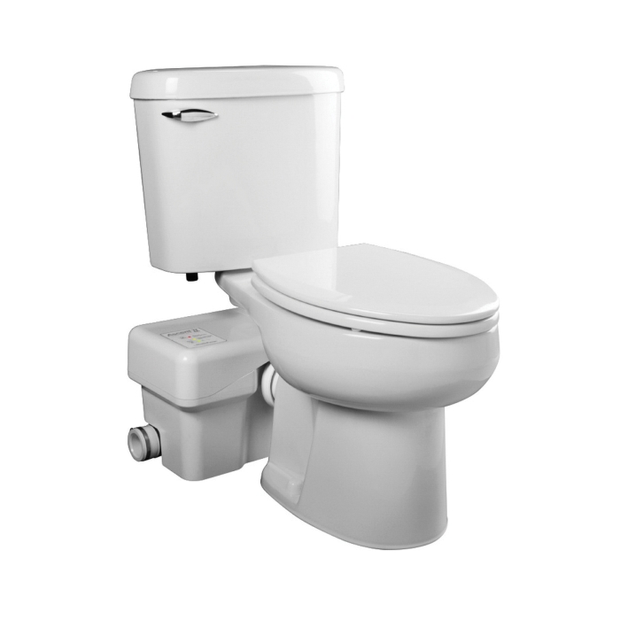 - Contoured tank design allows for wall molding to run behind macerator box