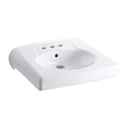 Brenham Vitreous China 3-Hole Single-Bowl Commercial Oval Wall Mount Bathroom Sink, 21-15/16 in L x 19-3/4 in W, Center Drain, White