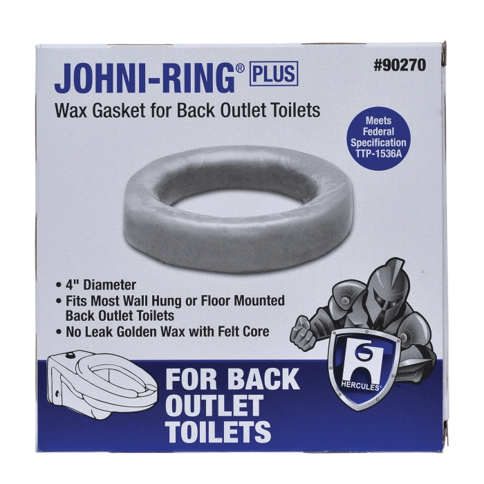 Hercules Johni-Ring specialties are soft and flexible high-grade petroleum wax rings for urinal and back outlet uses on 3 and 4 in waste lines.