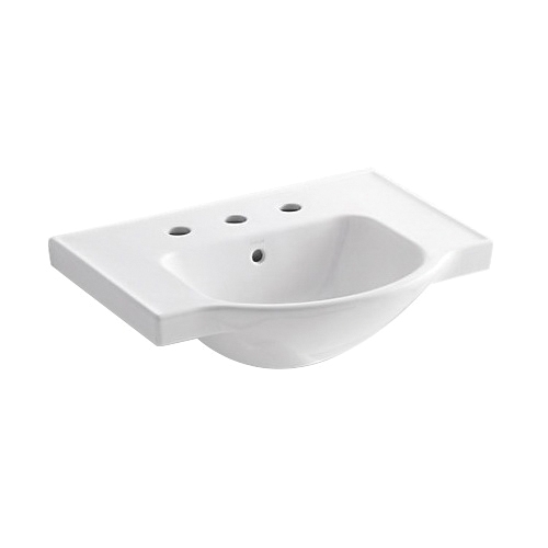 Veer Vitreous China 3-Hole Single-Bowl Pedestal Bathroom Sink Basin, 24 in L x 18-1/4 in W x 6 in H, Rear Drain, White