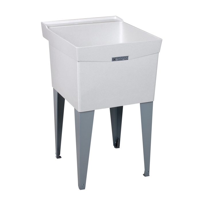 Durastone Utilatub Fiberglass Floor Mount Laundry Tub, 18 gal, 24 in L x 20 in W x 34 in H, Marbleized White