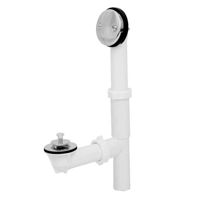 Dearborn plastic tubular uni-lift bath waste is manufactured from durable polypropylene plastic and features a uni-lift stopper with chrome finish.