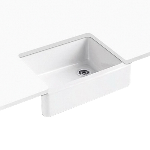 Whitehaven Enameled Cast Iron Single-Bowl Rectangular Undermount Kitchen Sink with Tall Apron, 29-11/16 in L x 21-9/16 in W x 9-5/8 in H, White