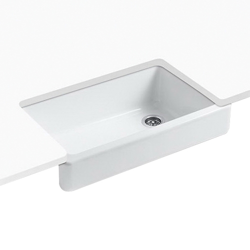 Whitehaven Enameled Cast Iron Single-Bowl Rectangular Undermount Kitchen Sink with Short Apron, 35-1/2 in L x 21-9/16 in W x 9-5/8 in H, White