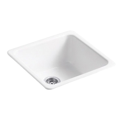 Iron/Tones Enameled Cast Iron Single-Bowl Square Top/Undermount Bar Kitchen Sink, 20-7/8 in L x 20-7/8 in W x 10 in H, White