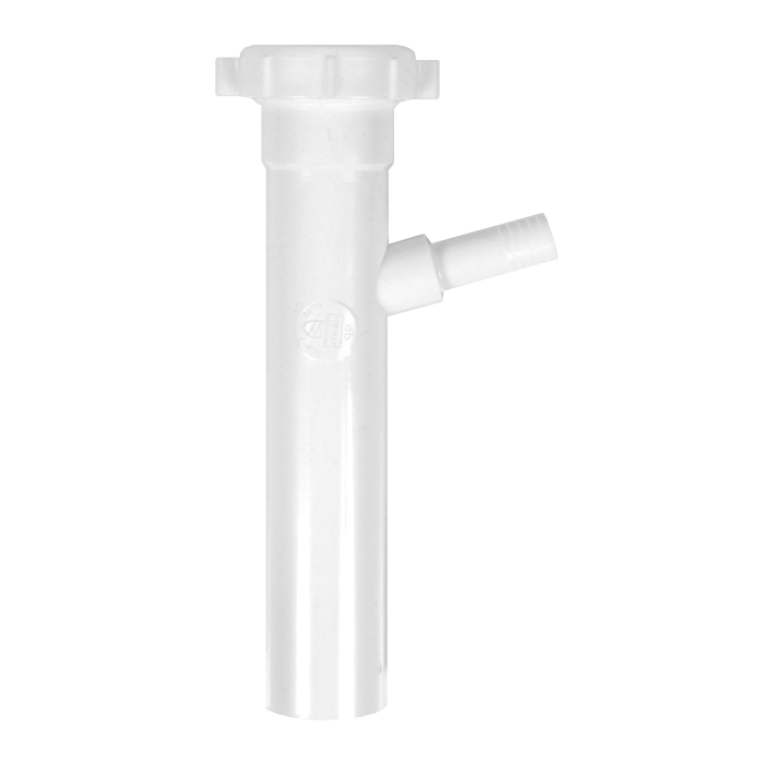 Dearborn plastic tubular branch tailpiece with slip-joint top is designed to connect a dishwasher to a plumbing drainage system.