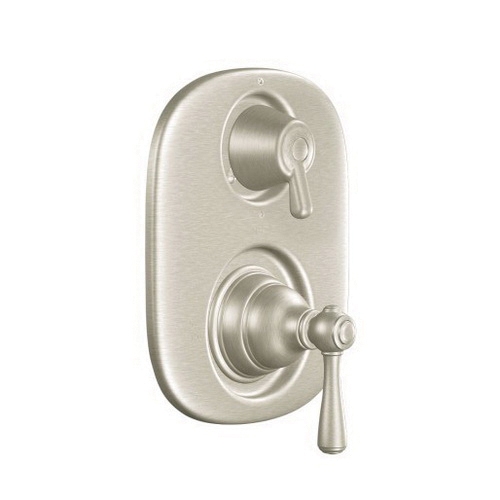 Moentrol Kingsley T4111 Metal 2-Handle 3-Function Tub/Shower Transfer Valve Trim, Brushed Nickel