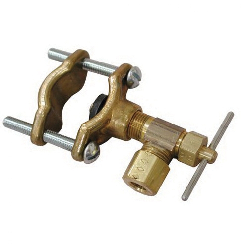 Corp Brass Saddle Clamp with Self-Piercing Valve, 3/4