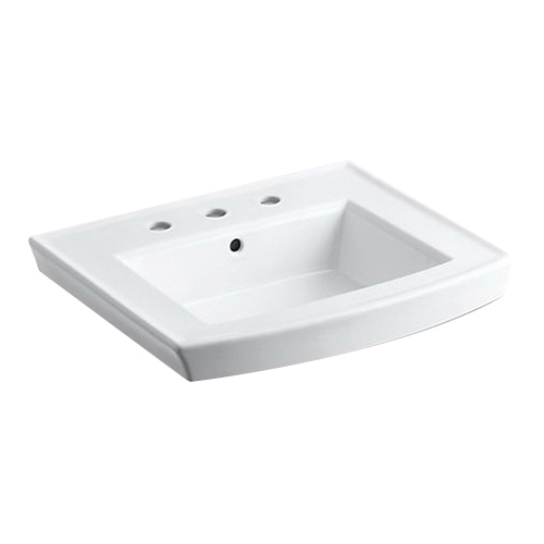 Archer Vitreous China 3-Hole Single-Bowl Rectangular Pedestal Bathroom Sink Basin, 24 in L x 20-1/2 in W x 7.938 in H, Center Drain, White