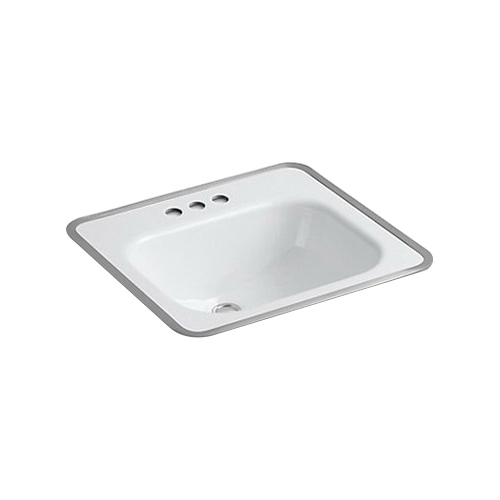 Tahoe Enameled Cast Iron 3-Hole Single-Bowl Rectangular Drop-In Bathroom Sink, 20 in L x 18 in W x 8-1/2 in H, Center Drain, White