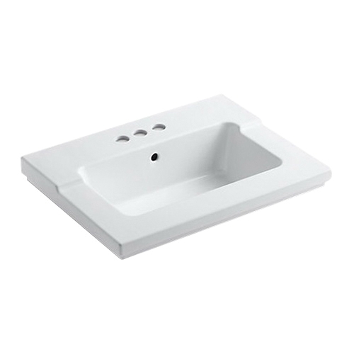Tresham Vitreous China 3-Hole Single-Bowl Rectangular Vanity Top Mount Bathroom Sink, 25-7/16 in L x 19-1/16 in W x 7-7/8 in H, Center Drain, White, 4 in Center
