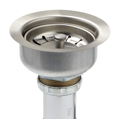 Heavy-duty forged stainless steel basket strainer with stainless steel basket. Furnished with 1-1/2 x 4 in 20 ga brass tailpiece. Fits sink depth up to 1/2 in.