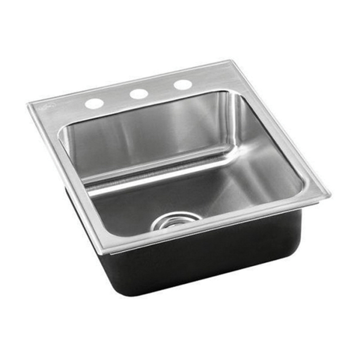 18 ga 304 18-8 Stainless Steel 3-Hole Single-Bowl Rectangular Drop-In Kitchen Prep Sink with Faucet Ledge, 17 in L x 20 in W x 7-1/2 in H, Center Drain, Polished Satin