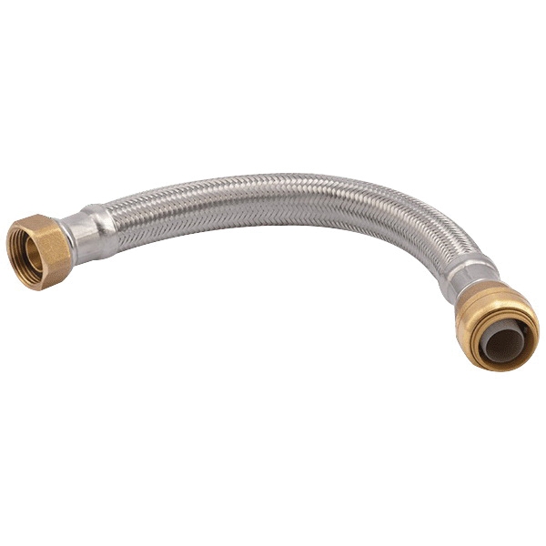 The SharkBite water heater connectors are used in residential and commercial applications to connect the hot and cold supply lines to the water heater. The connectors are EPDM knitted with braided stainless steel.