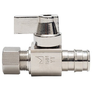 129 Nickel-Plated Brass Quarter-Turn Straight Supply Stop, 1/2 x 1/4 in, PEX x Compression