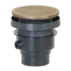 Sioux Chief 834 series Finish Line adjustable on-grade cleanout shall be used where necessary in drainage systems. Cleanout shall allow adjustment before and after the concrete pour. Scoriated cleanout cover shall meet applicable load requirements for intended use. Cleanout shall include a slotted, polypropylene or brass cleanout plug, situated in base adapter. Designed in accordance with ASME A112.36.2M-2002.