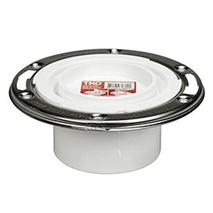 Sioux Chief 883 or 884 series TKO closet flanges shall be installed where necessary in drainage systems. Closet flange shall be fastened to floor and provide tabs or slots for fastening closet bolts to flange ring. Flange shall have a 3 in Schedule 40 hub connection which conforms to ASTM D2665 (PVC) or D2661 (ABS) and also install inside most 4 in pipe. Knockout cap must come out in 1-piece and shall be sized larger than drain opening, preventing it from falling down drain line. Closet flange shall hold a standard head test and be UPC listed.