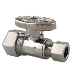 08SVS Chrome-Plated Brass 1/4-Turn Straight Supply Stop Valve, 5/8 x 3/8 in, Compression, Lead-Free