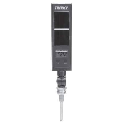 - Rugged cast aluminum case, easy to read LCD display and an adjustable-angle stem that is fully interchangeable with industrial liquid-in-glass thermometers
