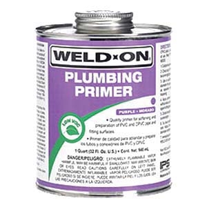 Weld-On plumbing primer is a low VOC emission, non-bodied, fast acting, primer. The strong action of plumbing primer rapidly softens and dissolves the joining surfaces of PVC and CPVC pipe and fittings. Available in clear and purple check local code for color requirement.