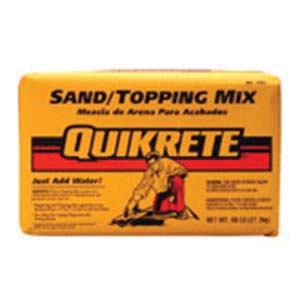 - Quikrete sand/topping mix consists of a uniformly blended mixture of Portland cement and commercial-grade sands, used for repairing and topping damaged horizontal concrete surfaces less than 2