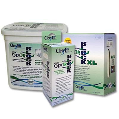 ClenAir HVAC odor block is not a perfume mask or cover-up. The unique ClenAir formula molecularly reacts with the airborne odor-causing compounds and eliminates them and other indoor pollutants leaving clean, fresh, air behind. The HVAC odor block makes it easy to remove odors and improve the indoor air quality in the entire home or building by treating the air through the HVAC system. Eliminates odors caused by mold, mildew, bacteria, pets, smoke, musty odors, water damage, fire damage, paints, chemicals, animal decay, stale air, garbage areas, sewer gases, skunks, and more. Use in A/C units, furnaces, rooftop units, fan coil units, and air handlers. Residential HVAC odor block treats up to 3 ton systems for 2 months. Commercial HVAC odor-block treats 10 - 15 ton systems for 4 months.