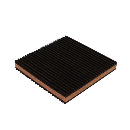 The cork is laminated between two corrugated pads to reduce vibration and noise. Designed to withstand 50 lbs. psi. Ideal for air conditioners, compressors, cooling towers, presses, machines or anywhere vibration control is needed. Elastomeric oil resistant.