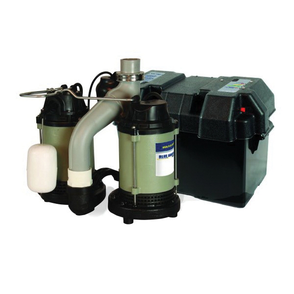 Thermoplastic Battery Back-Up Sump Pump System, 12 VDC, 1/2 hp, 1750 gph, 15 ft