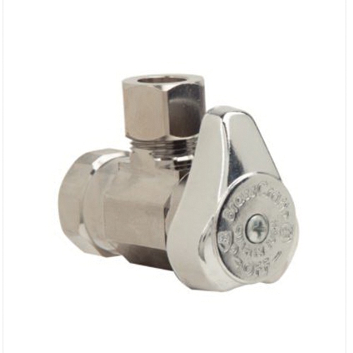 BrassCraft 3/8 in FIP inlet x 3/8 in OD compression outlet 1/4-turn angle valve controls water flow to household plumbing fixtures - faucets, toilets, dishwashers, icemakers, washing machines, etc. The angle valve is most often used where the water pipe enters the room from the wall. With a 90 deg turn of the valve handle, you are able to stop the flow of water leading to the plumbing fixture, allowing for maintenance and repair without shutting off the water to the entire home.