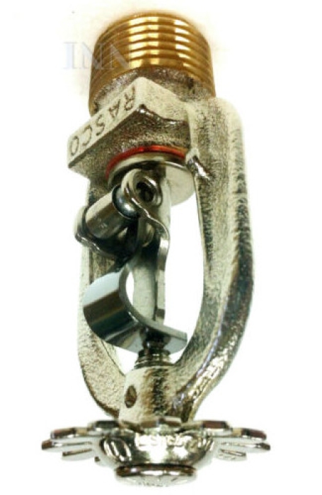 The Reliable model G Automatic Sprinkler utilizes the center strut solder in compression principle of construction. The fusible alloy is captured in the cylinder of the solder capsule by a stainless steel ball. When the fusible alloy melts, the ball moves into the cylinder allowing the cylinder to fall away from the sprinkler. When this happens, the lever is released to spring free from the sprinkler so that all of the operating parts clear from the waterway allowing the deflector to distribute the discharging water. Except for the parts in the cylinder as mentioned above, the sprinkler components are made from copper based alloys for maximum corrosion protection. Lead plated, wax coated or wax over lead plated sprinklers are available for specially severe environments. Chrome plated sprinklers are available for decorative purposes. All sprinklers are individually hydrostatically tested. All sprinklers are identified as to their fusing point by markings that appear on several of the operating parts and by an identifying color that appears on the frame.